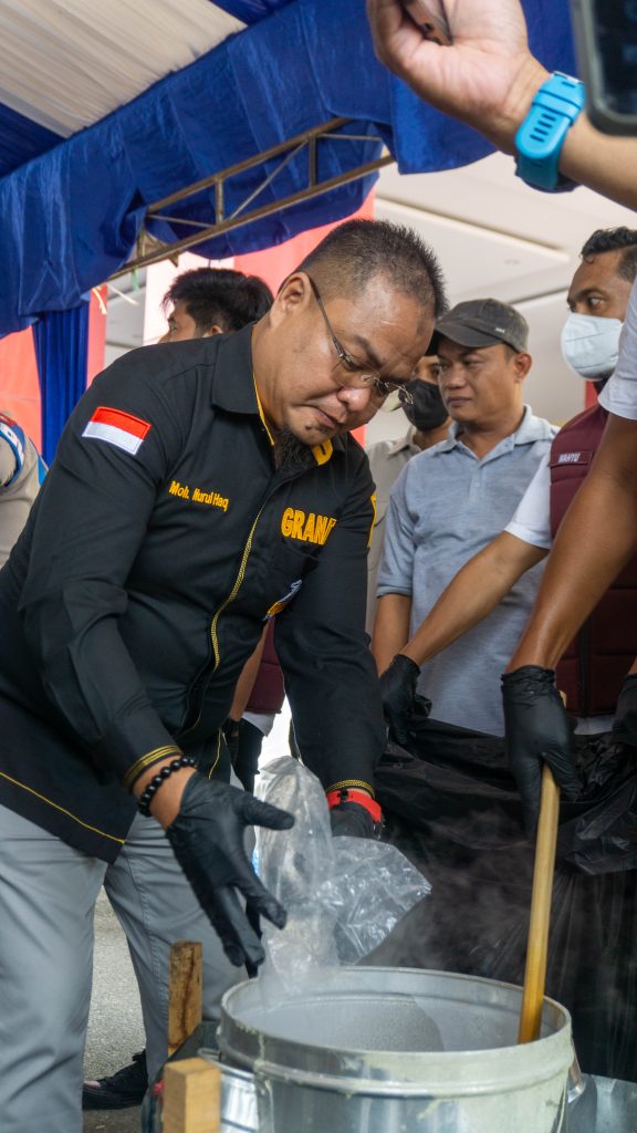 Foto: Ketua DPD Granat Sulawesi Tengah, Muhammad Nurul Haq, menyaksikan langsung proses pemusnahan barang bukti narkotika hasil pengungkapan jaringan peredaran narkoba oleh Polda Sulawesi Tengah. (Ist)