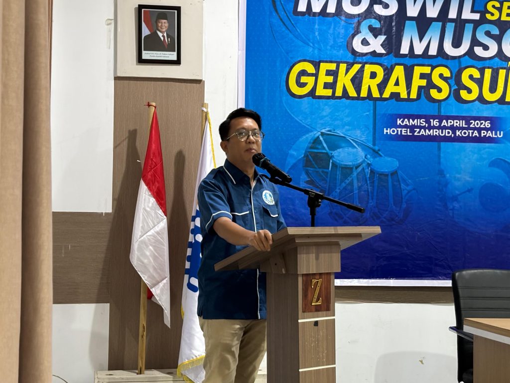 Musyawarah Wilayah (Muswil) dan Musyawarah Cabang (Muscab) Gerakan Ekonomi Kreatif Nasional Sulawesi Tengah digelar secara serentak di Hotel Zamrud pada Kamis malam (16/04/2026). Kegiatan ini menjadi momentum penting dalam memperkuat konsolidasi organisasi sekaligus mendorong pengembangan ekonomi kreatif di daerah.